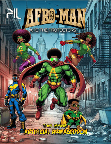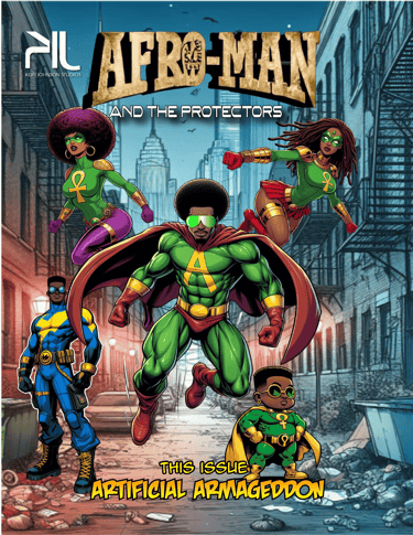 Afro-Man and the Protectors are a formidable team of superheroes dedicated to safeguarding the world from extraordinary threats. When a coalition of rogue countries unites to launch a devastating cyber attack against America, aiming to cripple the nation, Afro-Man and his team step in to stop the impending disaster. Using their unique abilities and unwavering determination, they confront the villains behind the attack, racing against time to protect their homeland and restore peace. The story unfolds as a high-stakes battle of intelligence, strength, and heroism, with the fate of the nation hanging in the balance.